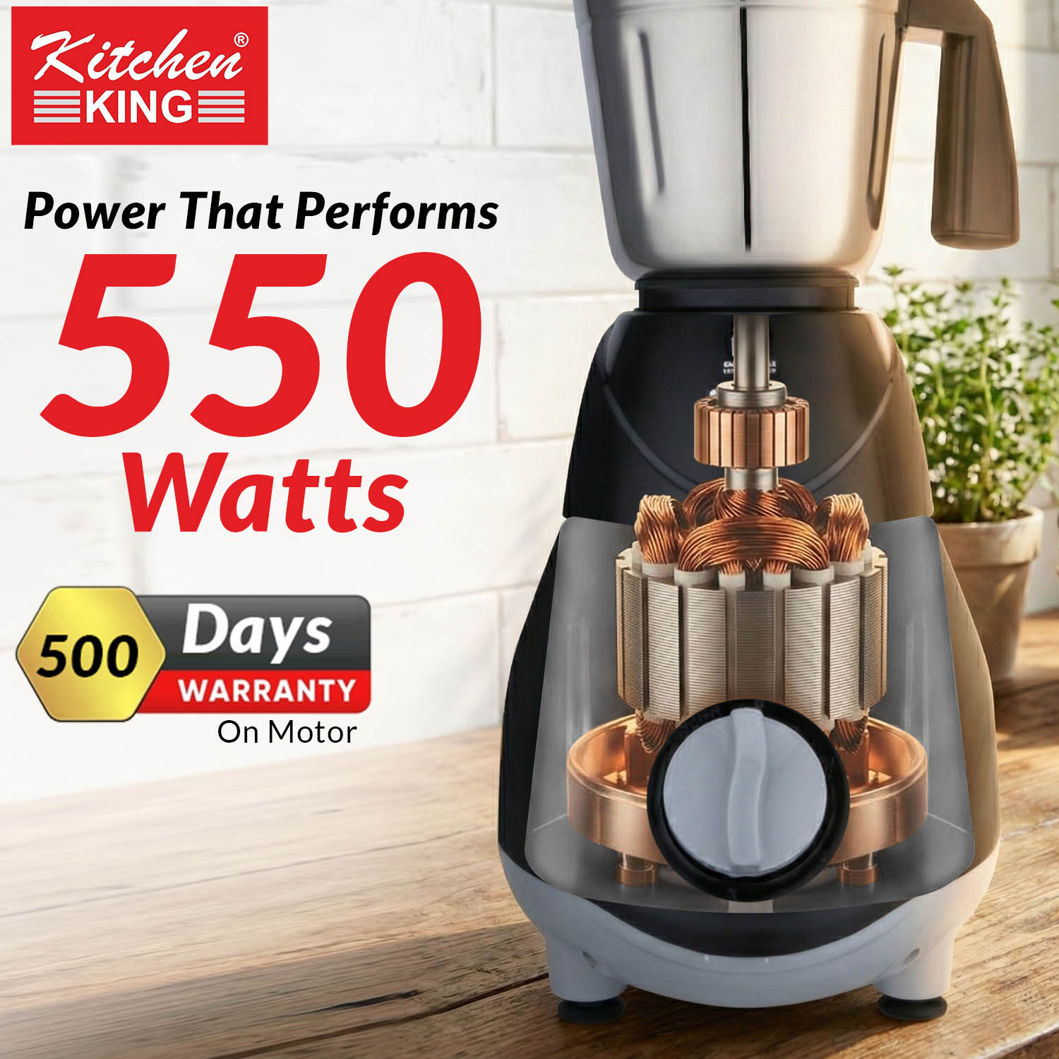 - Warranty and Assurance: The Kitchen King Candy Mixer Grinder comes with a 500 Days warranty on motor warranty from the date of purchase, ensuring durability and reliability for your kitchen tasks.