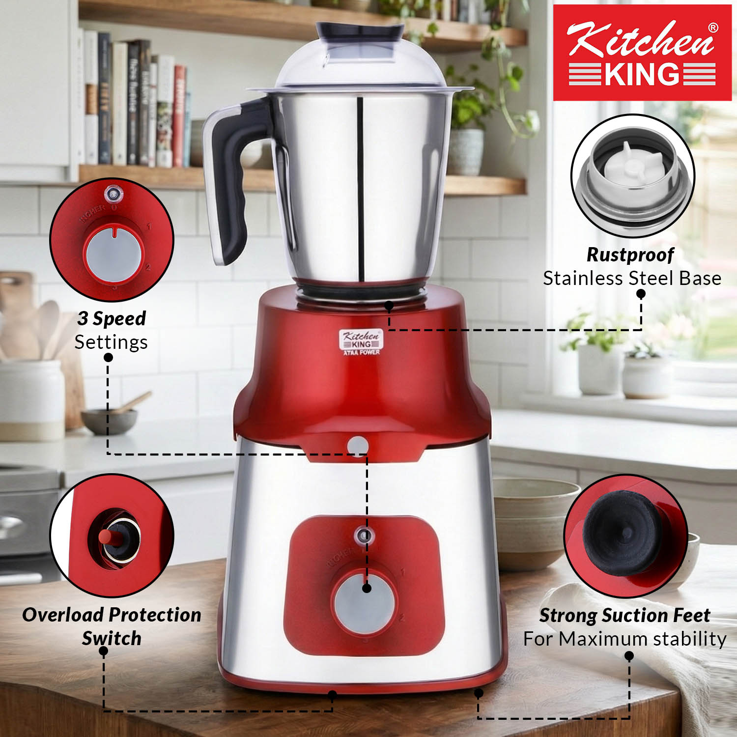 - Warranty and Assurance: The Kitchen King Apricot Mixer Grinder comes with a 3 Years warranty on motor warranty from the date of purchase, ensuring durability and reliability for your kitchen tasks.